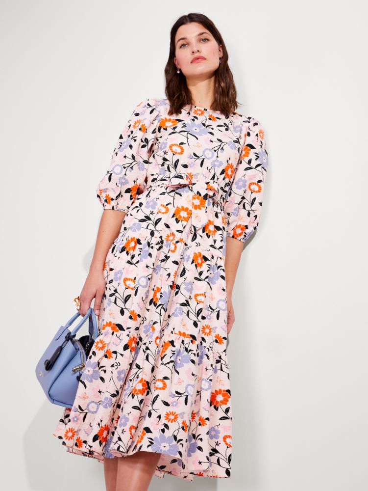 Women S Blue Heron Grand Flora Poplin Midi Dress Kate Spade New York